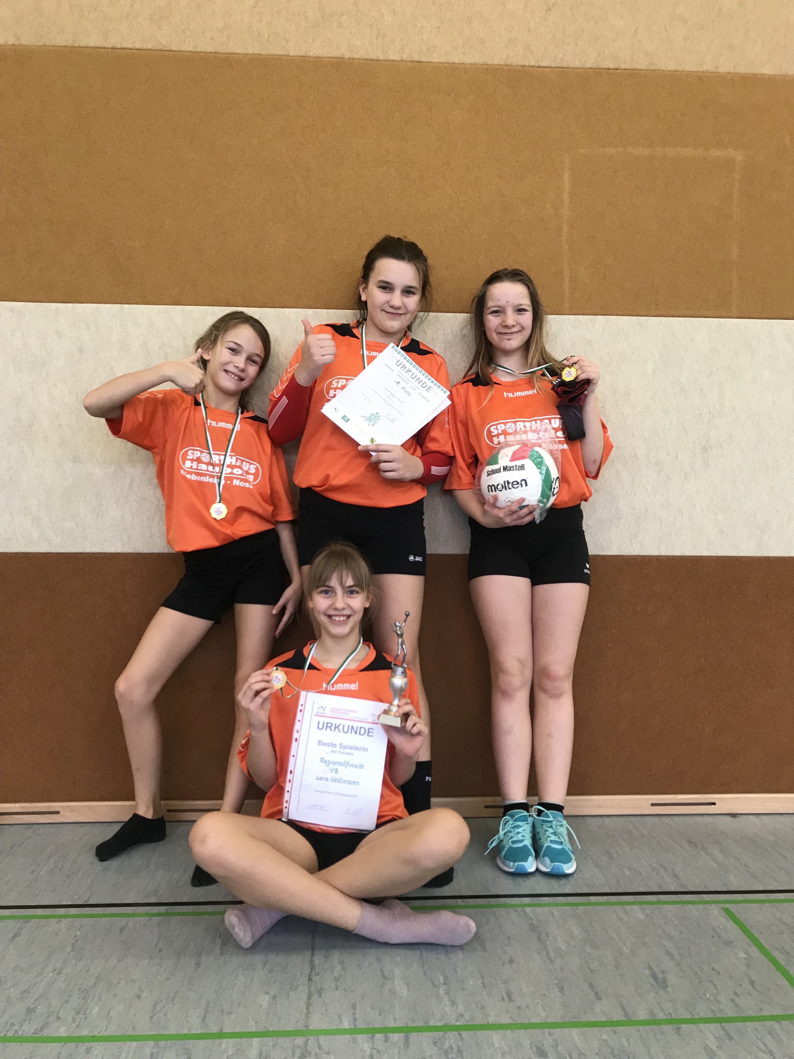 Neben den Fußballern fuhr auch unsere jüngste Volleyballmannschaft des GSG am 14.02.2019 zu einem sportlichen Wettkampf. Merle Buchsteiner, Finnja Pietzsch, Lara Hettmann und Lisa Rodehau hatten sich bereits Mitte Dezember als Sieger des Kreisfinales in der WK IV weiblich für das Regionalfinale qualifiziert.