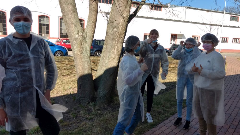 In der Konos Papierfabrik sahen wir automatisierte Fertigungsstraßen für Kaffeefilter. Dort beeindruckte die Geschwindigkeit der Herstellung, aber auch die ausgeklügelte Elektronik und Mechanik der Anlagen. Wir lernten etwas über die Anforderungen an den Rohstoff für die Papierherstellung und über die unterschiedlichen Papiersorten – also angewandte Naturwissenschaft. Da dort Lebensmittel-Artikel hergestellt werden, ging es nicht ohne Schutzkleidung.