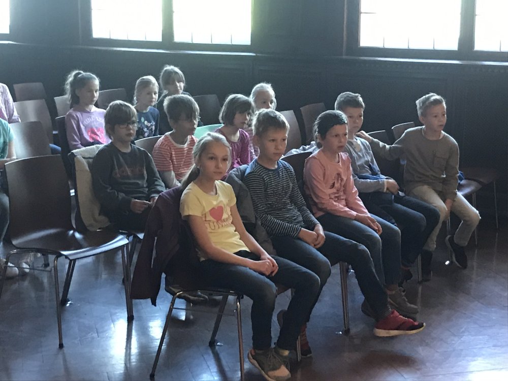 Aufgeregt und sehr nervös - so gingen wir, die PKU Gruppe der achten Klasse von Frau Chill, am Dienstag, dem 14.05.2019, zur Schule. Denn wir hatten eine besondere Aufgabe an diesem Tag: Wir sollten ein literarisches Programm für die Drittklässler der Grundschule Nossen gestalten. Ungefähr zwei Monate bereiteten wir uns darauf vor: Es wurden Märchen einstudiert, moderne Fassungen erfunden, Geschichten zum Vorlesen herausgesucht, gesungen und getanzt und ein Quiz über unsere schöne Bibliothek entwickelt.