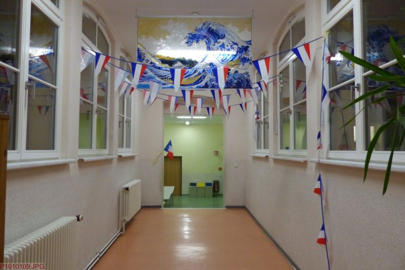 Am 22. Januar 2020 sah unser Gymnasium innen etwas anders aus. Französische Wimpel und Fahnen an verschiedenen Ecken, Schülerinnen und Schüler, sowie auch Lehrerinnen und Lehrer in den Farben Frankreichs gekleidet. In den Gängen im Haus 1 und Haus 2 waren Ausarbeitungen des Französisch-Grundkurses der 12. Klasse zu verschiedenen Themen der deutsch-französischen Beziehung ausgestellt. Diese Informationen konnten sehr gut für das Quiz genutzt werden, an dem die Schülerinnen und Schüler teilnehmen konnten. Musikalische Untermalung gab es in allen Pausen mit französischer Musik und auch für den Gaumen war etwas dabei. Wir bedanken uns an dieser Stelle beim Grundkurs-Französisch Klasse 11 und weiteren Helfern, die seit der ersten Stunde im Akkord Crêpes gebacken haben und diese dann in der Frühstücks- und Mittagspause verkauft haben.