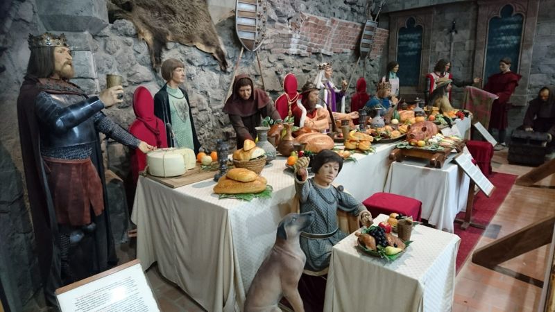 Wachsfiguren beim königlichen Dinieren an der Tafel