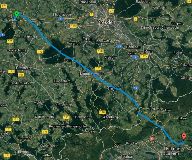 Nach etwa 20 Minuten blieben die Anrufe beim GPS-Tracker unbeantwortet, der Ballon hatte das Mobilfunknetz nach oben verlassen. Laut unserer Vorausberechnung mit einer Software (www.) sollte der Ballon nach etwa 3 Stunden in der Nähe der tschechischen Grenze bei Berggießhübel/Usti landen.