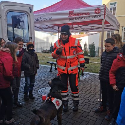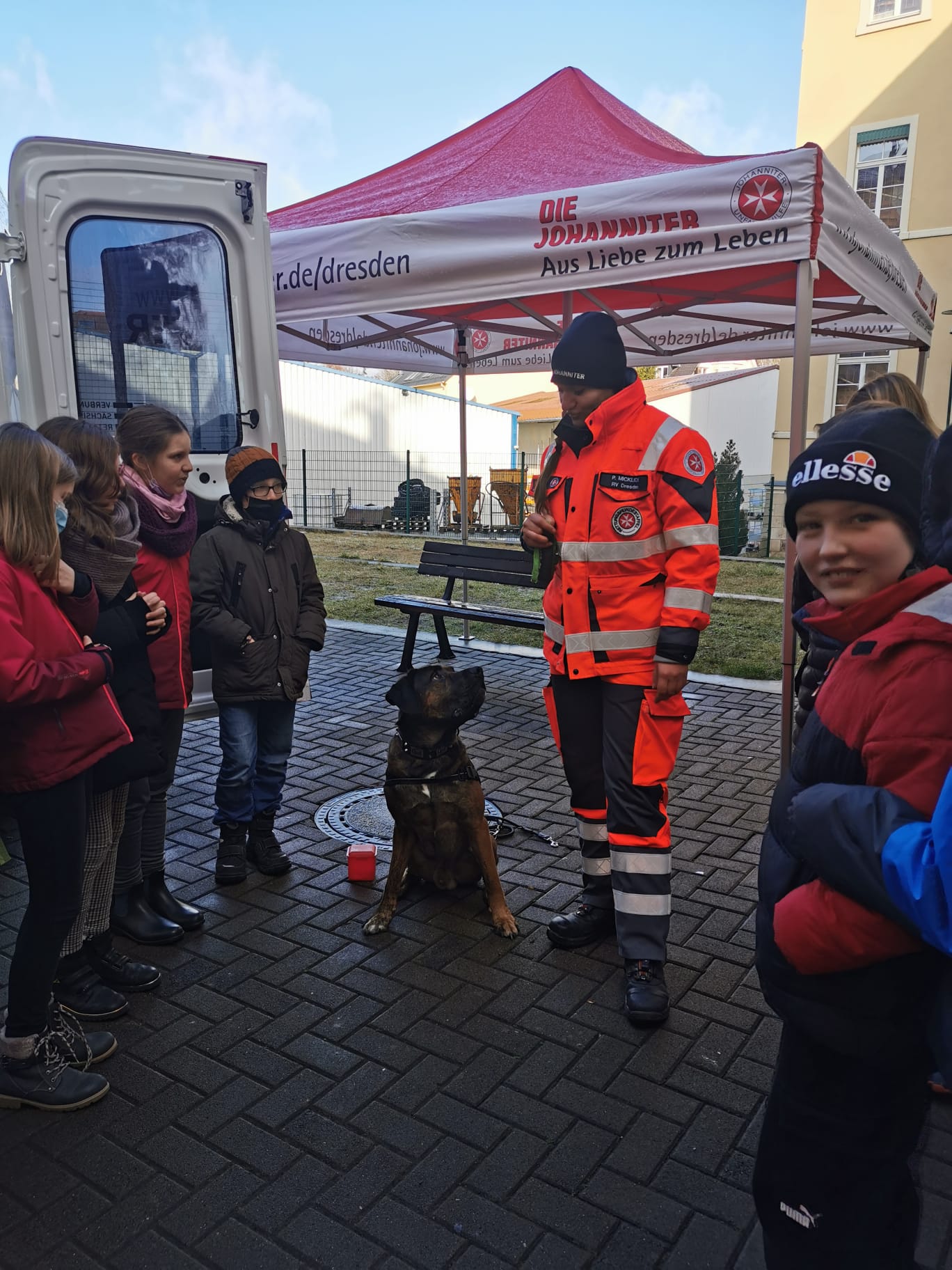 Besondere Alltagshelden sind Menschen, die ehrenamtlich tätig sind. Für uns war es deshalb ein Höhepunkt, dass die Kameradinnen und Kameraden der Freiwilligen Feuerwehr Nossen, der Wasserwacht Meißen, der Johanniter aus Meißen und der Rettungshundestaffel der Johanniter aus Dresden unsere Gäste waren. Sie präsentierten ihre Technik und ihre felligen Gefährten und berichteten von ihrer verantwortungsvollen Tätigkeit.