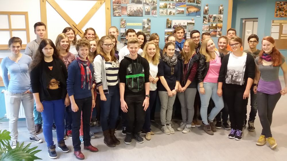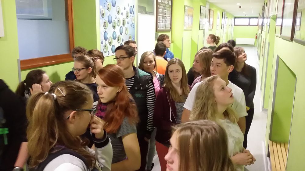 Am frühen Morgen trafen wir uns in unserer Partnerschule wieder - trotz kurzer Nacht alle mit einem Lächeln im Gesicht. Dem Schulrundgang durch das Gymnasium folgt gerade der Besuch in verschiedenen Unterrichtsstunden.