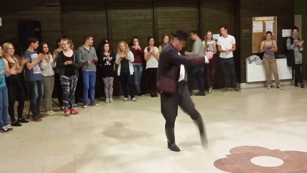 Außergewöhnlich war auch die Tanzstunde mit dem Schulleiter (!!!), der uns ungarische Volkstänze lehrte und selbst einige vorführte.