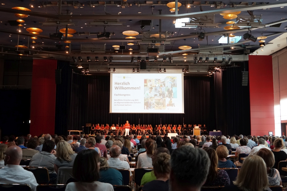 Am 16.06.2019 umrahmte unser Jugendchor musikalisch eine Konferenz des Kultusministeriums zur Berufsorientierung. Die Eröffnung fand vor etwa 600 Teilnehmern im Kongresszentrum Dresden statt.