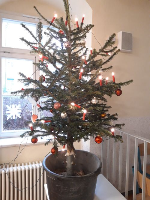 Dank der Unterstützung der Firma Landmaxx und dem Wirken der Klasse 6/1 schmücken seit letzter Woche zwei Weihnachtsbäume unser Schulhaus im Speisesaal und im Übergang zwischen Haus I und Haus II.
