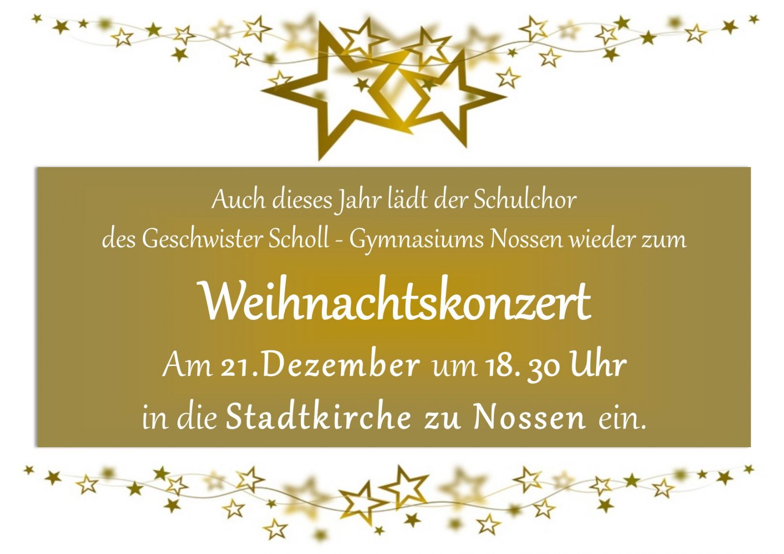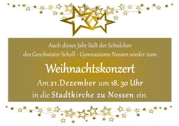 Um diesen Dingen ein wenig näher zu kommen, gestaltet der Schulchor des Geschwister – Scholl Gymnasiums Nossen wieder ein Weihnachtskonzert in der Kirche in Nossen für Sie. Dabei haben sie endlich die Möglichkeit zu entspannen und den wundervollen Gesängen zu lauschen.