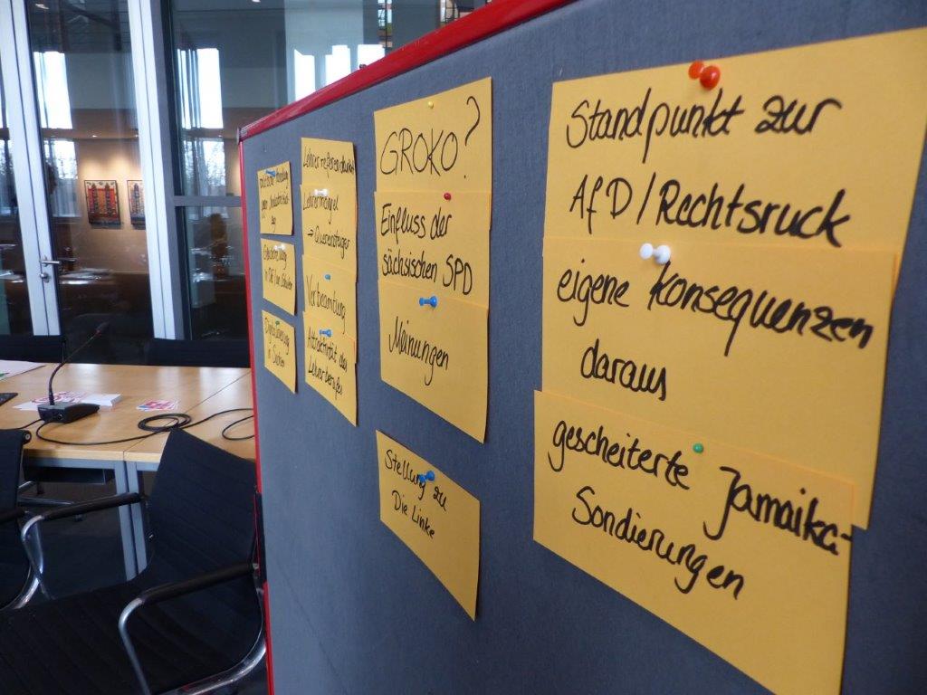 Und zwar viel. Gut, dass die SPD neben der Organisation des jährlichen Jugendpressetages in Kooperation mit der Jugendpresse Sachsen nicht nur an die vielseitigen Informationen und Gespräche sowie die Nervennahrung denkt, sondern auch an das liebevoll angerichtete Essen, welches mit belegten Brötchen, Croissants und Früchten beginnt und mit Mittag endet.