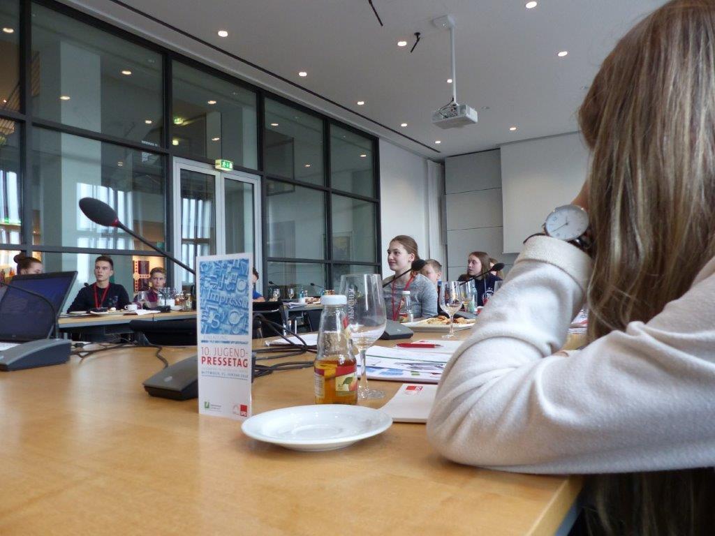 Pünktlich um Neun erreichten wir, die Reporter der Schülerzeitung, den Landtag und wurden gleich in die Etage der dort sitzenden Partei SPD befördert, nett begrüßt und aufgefordert, „schon mal zuzugreifen“. Ja, das Essen sah wirklich bezaubernd aus, aber noch bezaubernder war natürlich der Gedanke an die bevorstehenden 7 Stunden, welche wir mit der Jugendpresse und den Politikern verbringen durften.