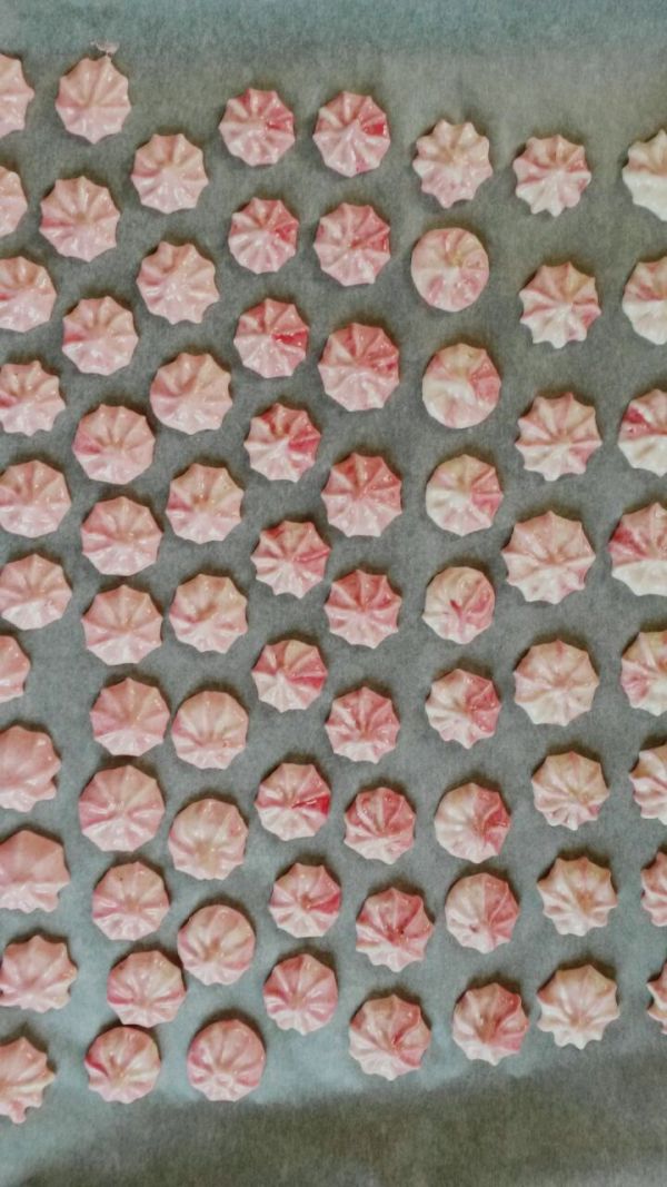 4. Danach spritzt ihr den Teig in etwa 3cm großen Kreisen auf das Backpapier.