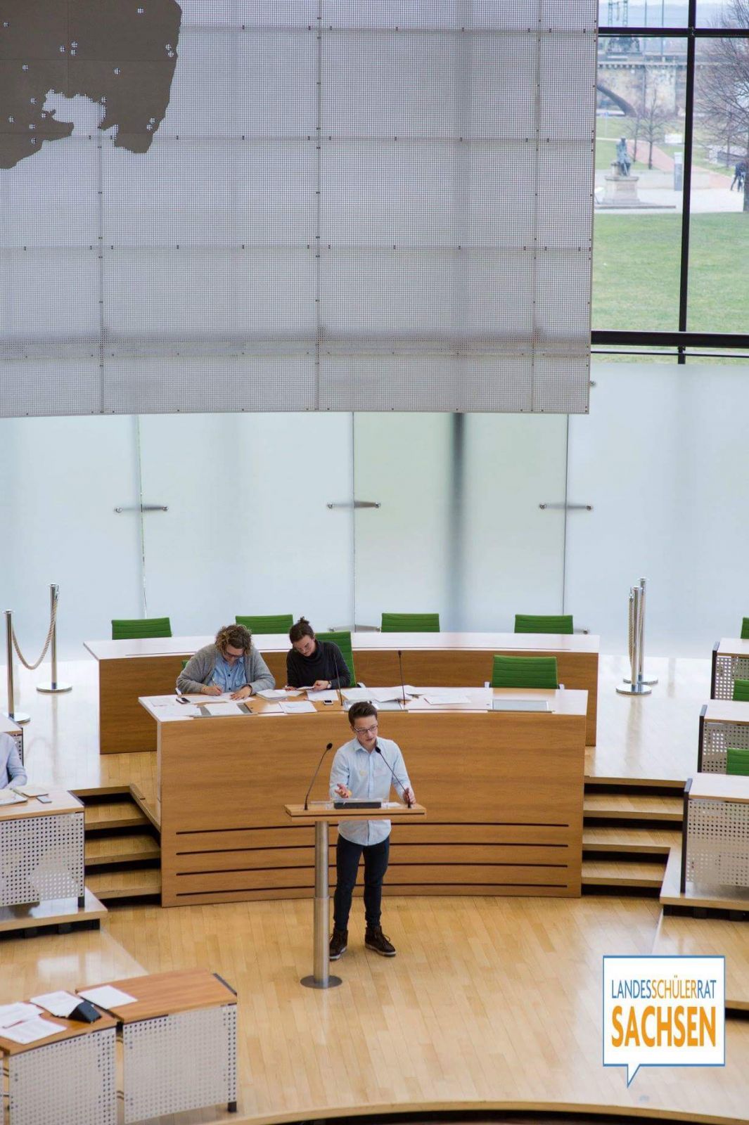 Im GRW-Unterricht werden uns die Grundstrukturen des deutschen Staates vermittelt. Gewaltenverschränkung, parlamentarische Demokratie, Fraktionen, Minister und Föderalismus sind Begriffe, die bestimmt jeder Schüler im Unterricht schon einmal gehört hat. Aber wie Goethe bereits seinen Mephistopheles sprechen ließ: „Grau, teurer Freund, ist alle Theorie und grün des Lebens goldner Baum.“ Kurz gesagt: Was nützen uns all diese Begriffe, wenn wir ihre praktische Anwendung nicht verstehen? Aus diesem Grund fand am 3. Februar zum fünften Mal das Planspiel Landtag, organisiert vom Landesschülerrat (LSR) und der Sächsischen Landeszentrale für politische Bildung (SLPB), im sächsischen Landtag statt.