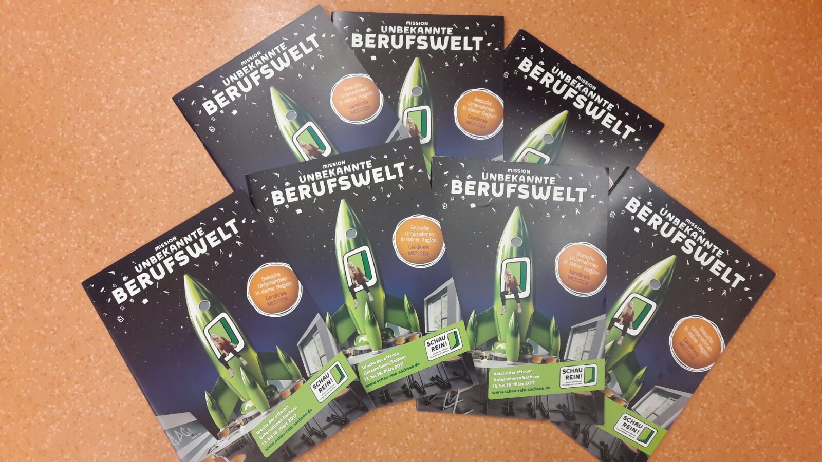 Alle Angebote zu "Schau rein! – Woche der offenen Unternehmen Sachsen" findet ihr im Internet. Oder ihr holt euch ganz einfach euren eigenen Katalog für den Landkreis Meissen im Schulhaus.