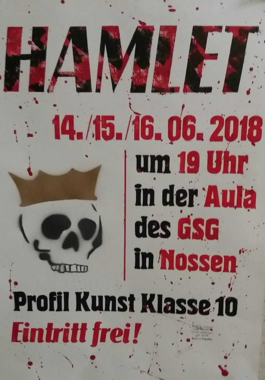 Die Schüler des künstlerischen Profils der Klasse 10 setzten sich in diesem Schuljahr mit der Tragödie Hamlet von Wiliam Shakespeare auseinander. Es entstanden 2 verschiedene Versionen des Stücks, indem die alte Schreibweise Shakespeares auf die Moderne trifft. Aufgeführt wird es am 14., 15. und 16. Juni, 19 Uhr in der Aula des Gymnasiums.
