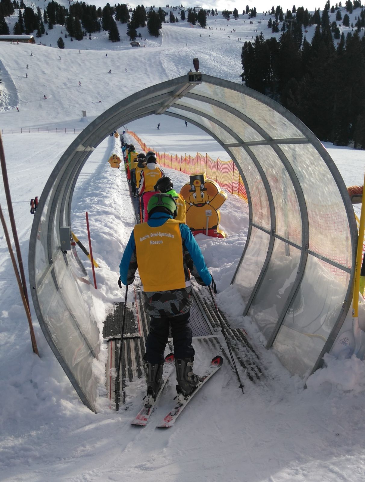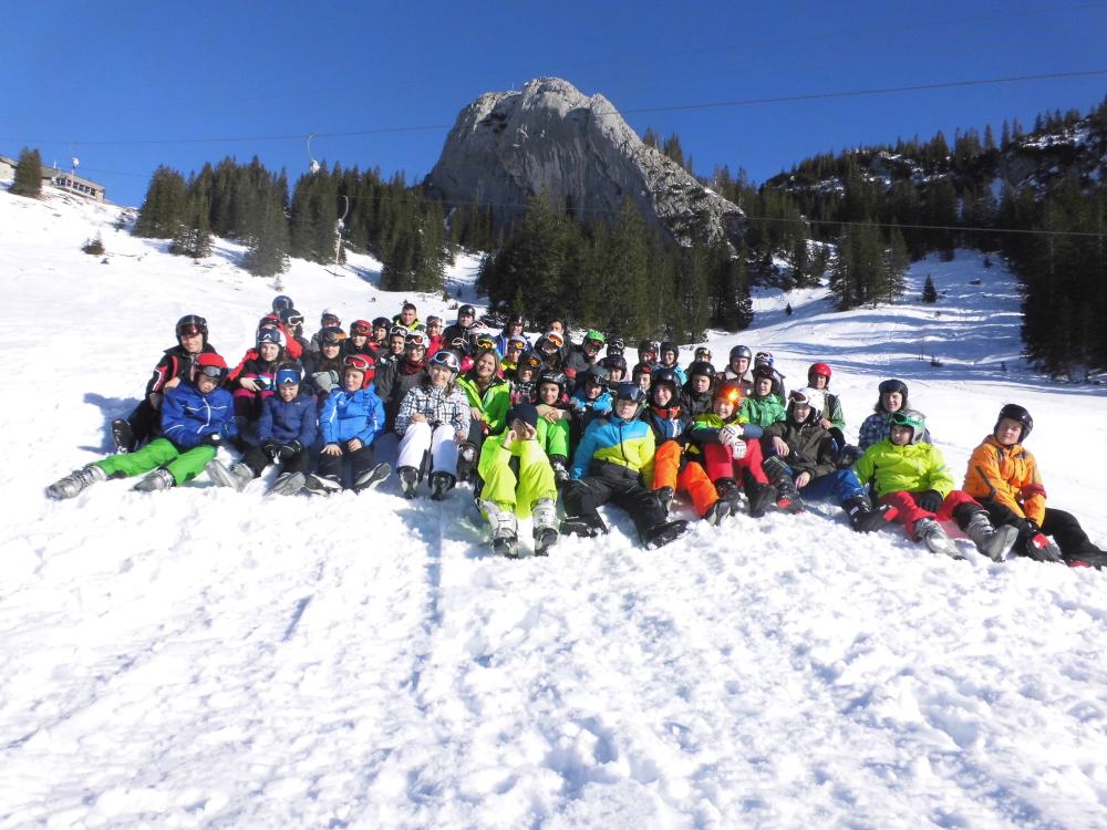 Am nächsten Morgen nach einem zeitigen Frühstück, hieß es dann Skisachen an und auf den Bus zur „Mittelstation“ warten. Dort angekommen bekamen wir unsere Skipässe und danach stiegen wir in die Gondeln zu den Skipisten. An der Mittelstation versammelten sich alle Gruppen um sich mit einer kleinen Erwärmung auf das Skifahren einzustimmen. Später gingen die Profis auf die schon etwas größeren Pisten, wohingegen die Anfängergruppen erstmal auf dem Kinderhügel blieben, um die ersten Grundkenntnisse zu erlernen.