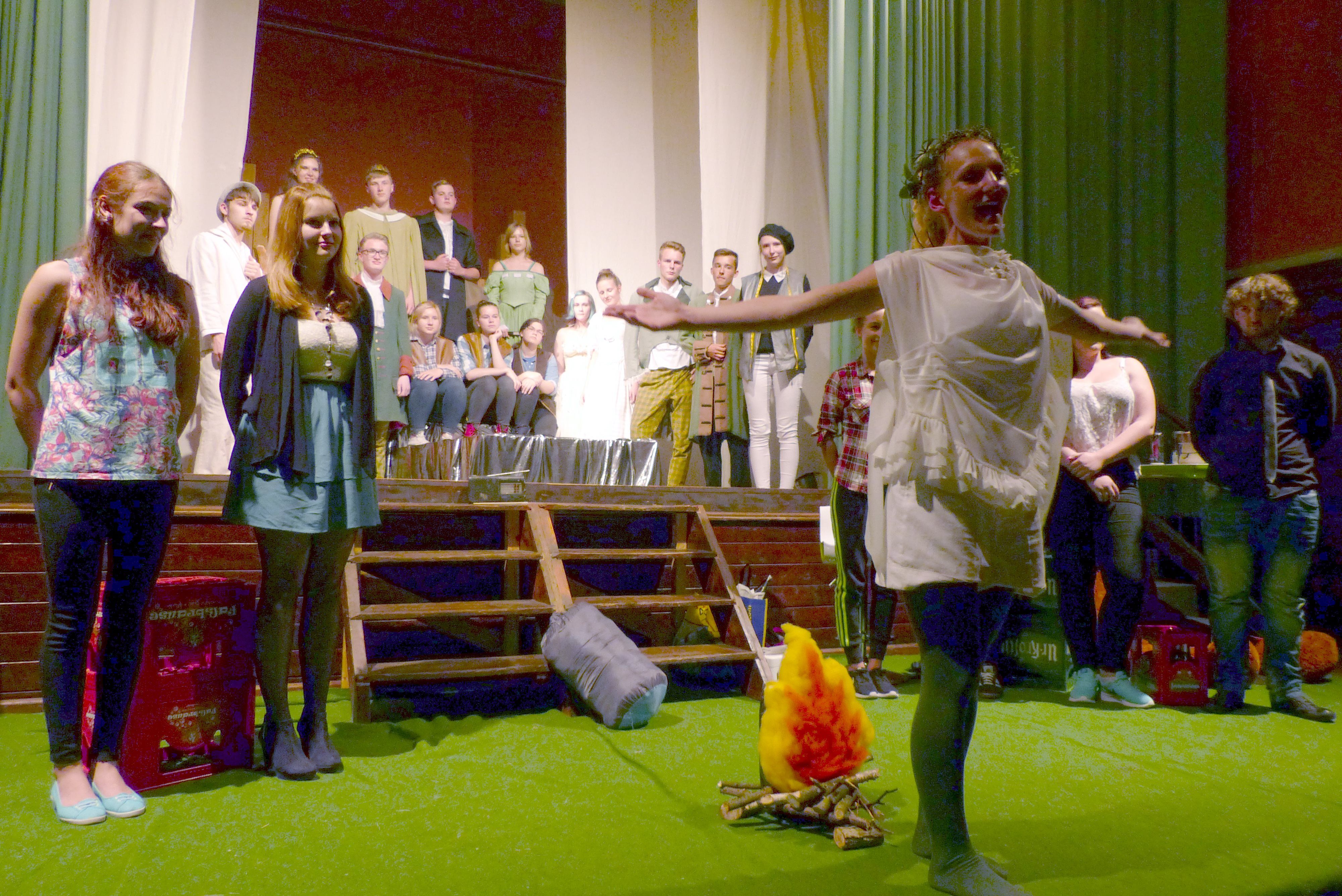 Die Zehntklässler des Profils PKU präsentierten am 8. bzw. 9. Juni ihre Abschlussarbeit vor einem breiten Publikum. Mit Gesang, Schauspiel und wunderschönen Kostümen brachten die Jungen und Mädchen die Geschichte über mehrere verwirrte Liebende hammermäßig über die Bühne. Jeder fühlte sich angesprochen, denn - wie auch des öfteren betont wurde - Liebe ist ein Chaos, damals wie heute. Und auch für die kleineren hatten die Schauspieler sich etwas einfallen lassen, denn die Handwerker traten, begleitet mit dem allseits bekannten Lied von Bob der Baumeister, auf. "Können wir das schaffen? Jo, wir schaffen das!"
